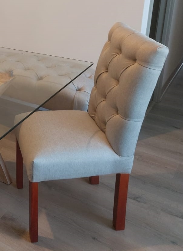 Silla moderna acolchada de aspecto abotonado, diseño elegante apto para cualquier comedor.